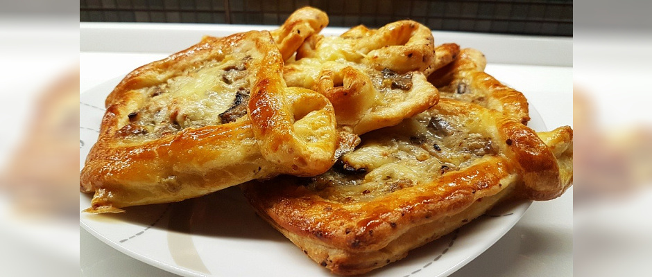 Слоёное тесто грибы жаренные с картофелем